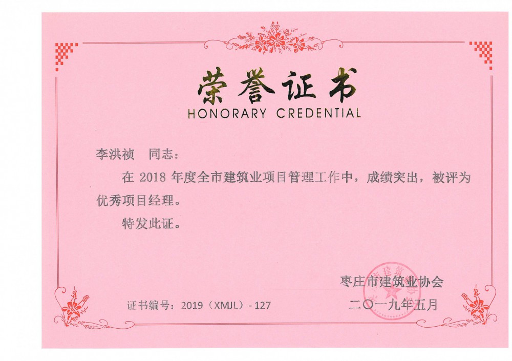 李洪禎-2018年度市級優(yōu)秀施工企業(yè)項目經(jīng)理