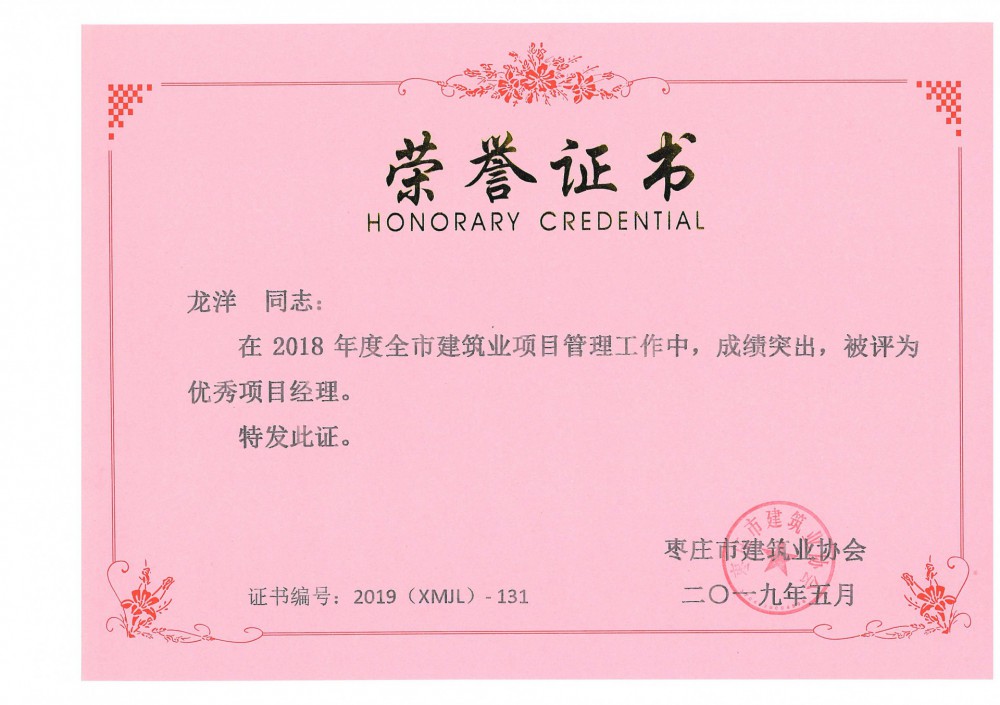 龍洋-2018年度市級優(yōu)秀施工企業(yè)項目經(jīng)理