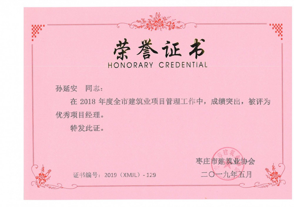 孫延安-2019年度市級優(yōu)秀施工企業(yè)及項目經(jīng)理