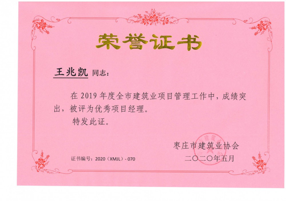 王兆凱-2019年度市級優(yōu)秀施工企業(yè)及項目經(jīng)理