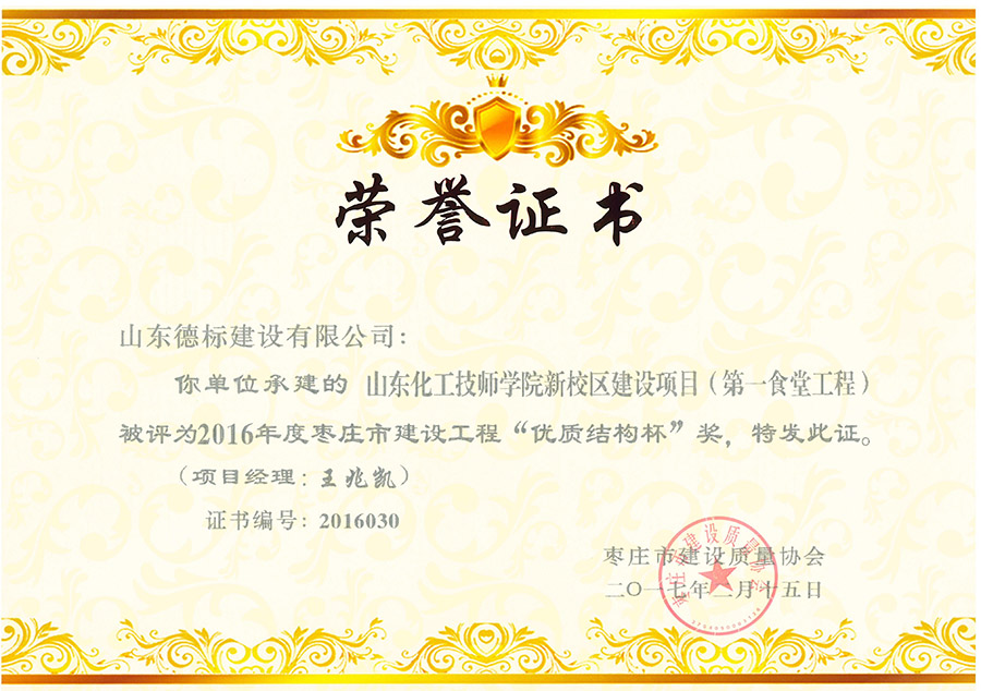 2016年市優(yōu)質(zhì)結(jié)構(gòu)-山東化工技師學(xué)院第一食堂