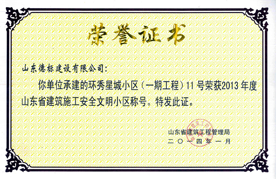2013年度環(huán)秀星城11#樓安全文明小區(qū)